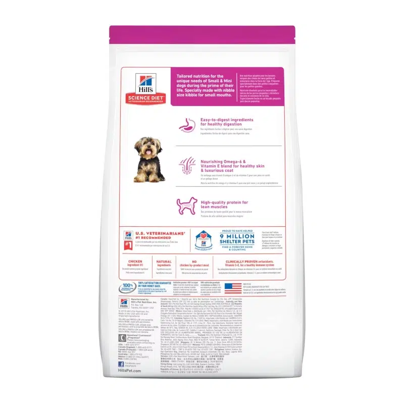En Dogo&Angora sabemos que tu mascota es parte de tu familia y quieres darle lo mejor. Por eso, te presentamos Hill’s® Science Diet® Adult Small Paws™ Chicken Meal & Rice Recipe. Este producto ha sido especialmente diseñado para satisfacer las necesidades nutricionales de perros adultos de razas pequeñas.