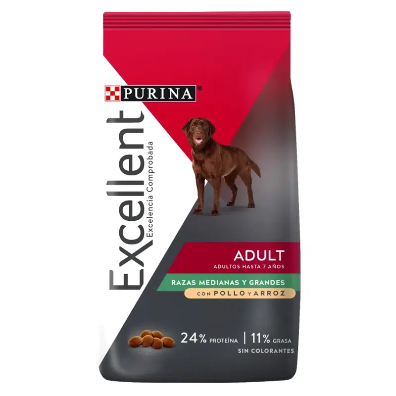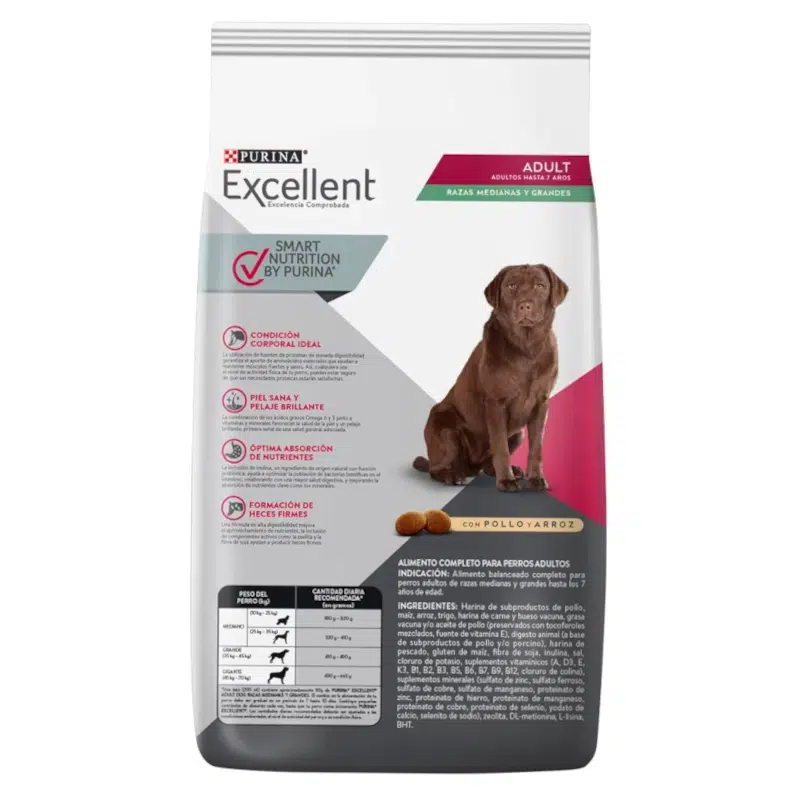 En Dogo&Angora entendemos la importancia de brindar a nuestras mascotas calidad y nutrientes excepcionales. Es por eso que presentamos con orgullo Purina® Excellent® Adulto Pollo y Arroz para Razas Medianas y Grandes, una opción premium que prioriza el bienestar y la felicidad de tu perro.